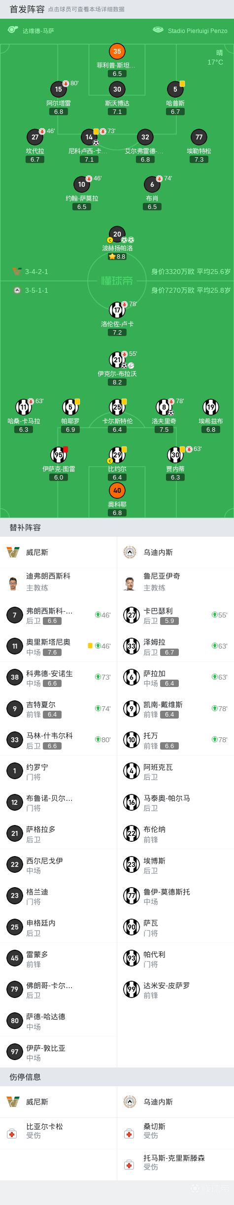 球场上的每个球员都展现出了顶尖的技术和战术意识,而伊克尔-布拉沃作为乌迪内斯的关键球员,在上半场的进攻表现尤为出色。不过,威尼斯的球员们在下半场展现出了顽强和坚韧的精神,他们一度在人数上的优势下打入两球,最终逆转了比赛。